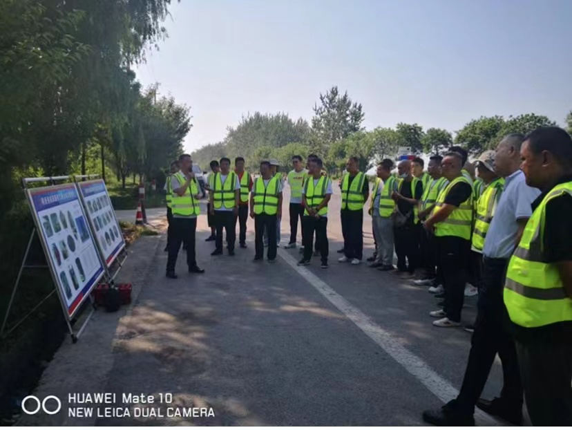 最后,李智勇總工程師介紹了咸陽(yáng)市地方道路今年的預(yù)防性養(yǎng)護(hù)中積極推廣精細(xì)化碎石表處技術(shù),借助8月10日市農(nóng)村公路事業(yè)服務(wù)中心組織全市縣區(qū)交通運(yùn)輸局及農(nóng)村公路管理單位在我公司淳化縣G211潤(rùn)鎮(zhèn)段精細(xì)化碎石表處施工現(xiàn)場(chǎng)召開(kāi)現(xiàn)場(chǎng)交流會(huì)的契機(jī),希望各分公司、拌合站立即行動(dòng)起來(lái),利用當(dāng)前的大好時(shí)機(jī),檢查和調(diào)整改性乳化瀝青生產(chǎn)設(shè)備,做好各項(xiàng)準(zhǔn)備工作,組織試生產(chǎn),發(fā)揮公司技術(shù)設(shè)備優(yōu)勢(shì),主動(dòng)聯(lián)系各縣區(qū)地方道路管理部門,搶抓機(jī)遇,開(kāi)拓市場(chǎng),占領(lǐng)市場(chǎng),為咸陽(yáng)市農(nóng)村公路發(fā)展貢獻(xiàn)公司力量。